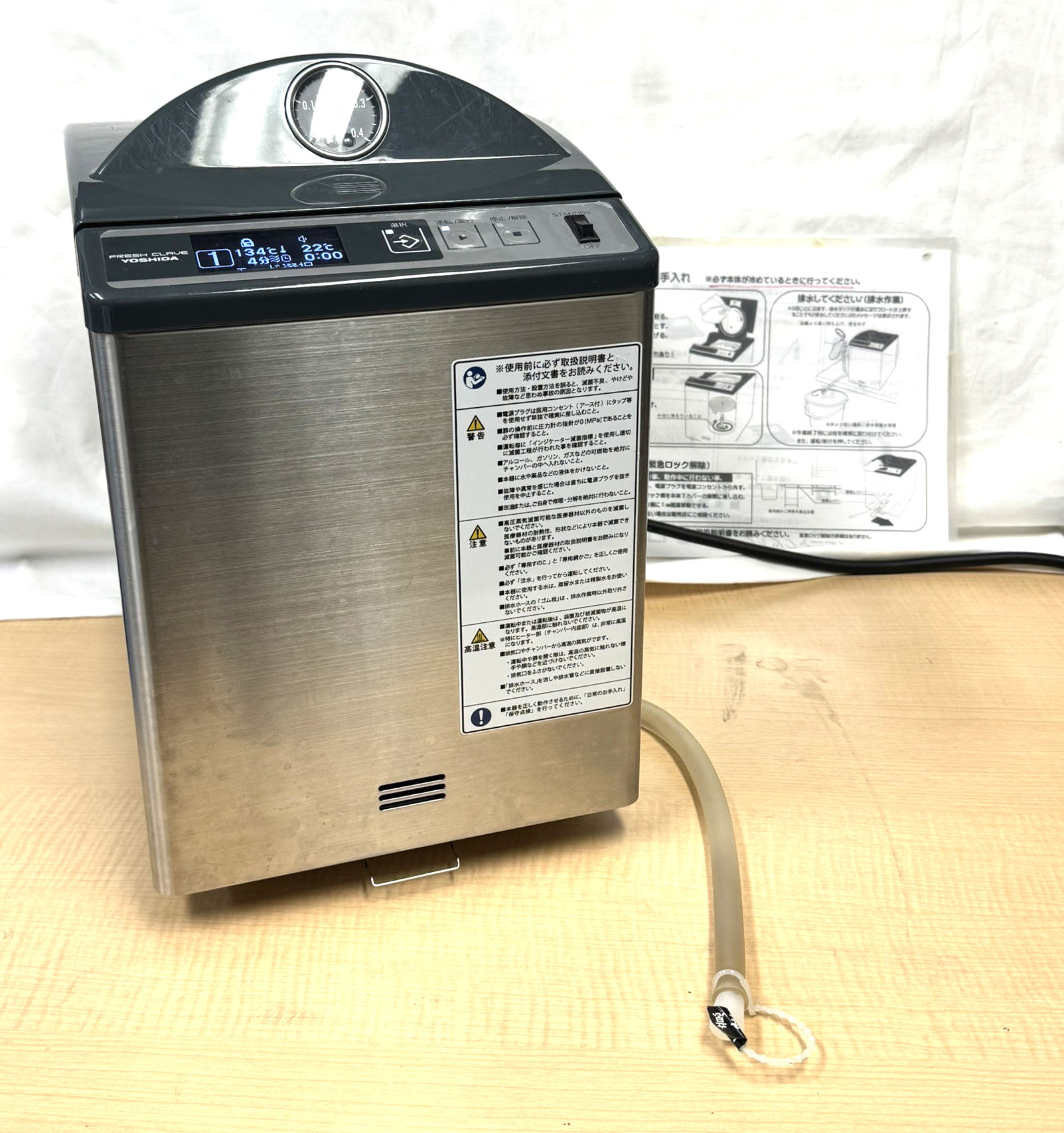 ヨシダ製高圧蒸気滅菌器フレッシュクレーブです。最新の後継機種を購入してから全く使用していないとのことでご相談を頂きました。手入れが行き届いており状態が良いため買取をさせて頂きました。