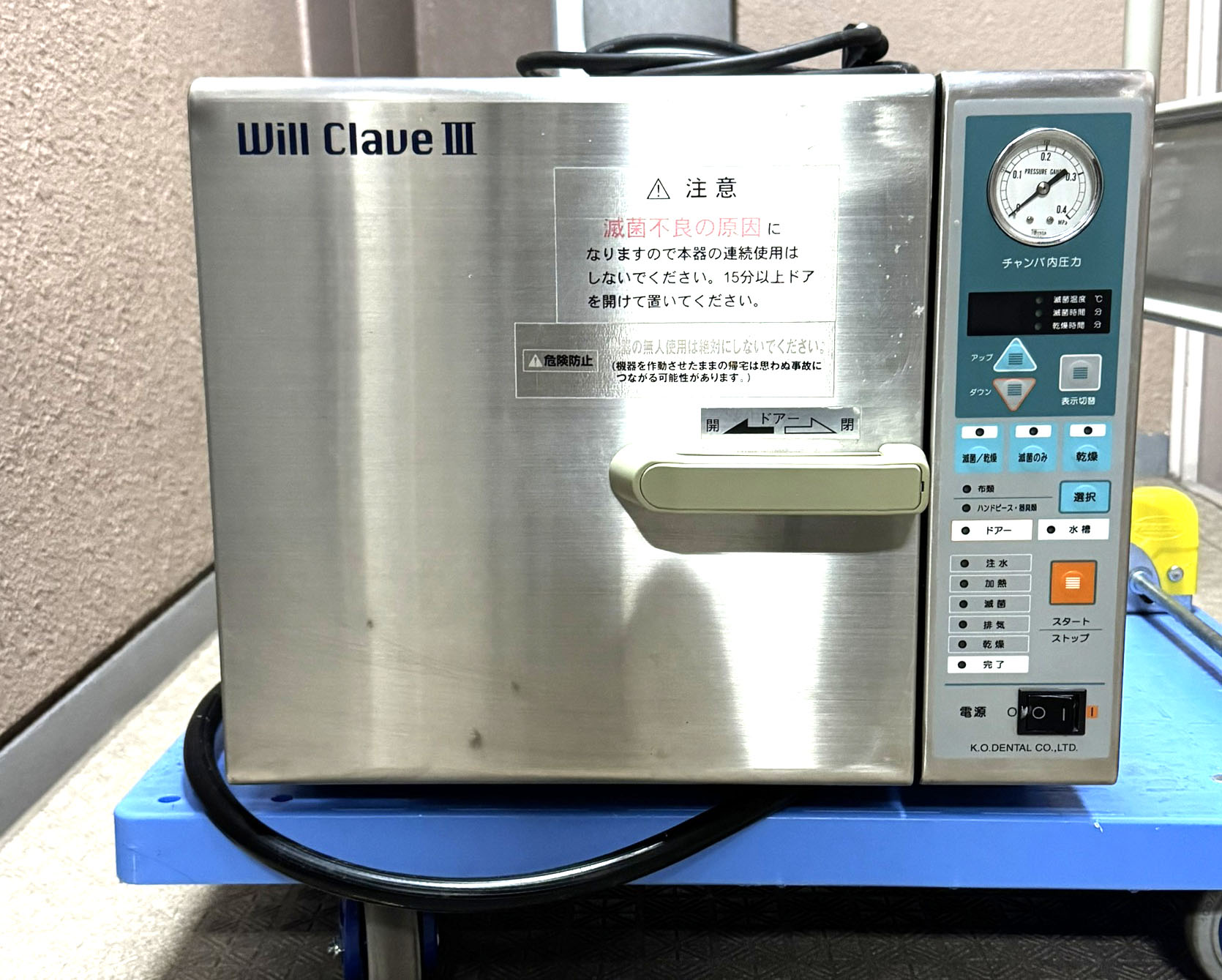東邦技研製高圧蒸気滅菌器ウィルクレーブです。閉院のため処分されるとのことでご相談を頂きました。古い物ですが手入れが行き届いており状態が良いため引取をさせて頂きました。